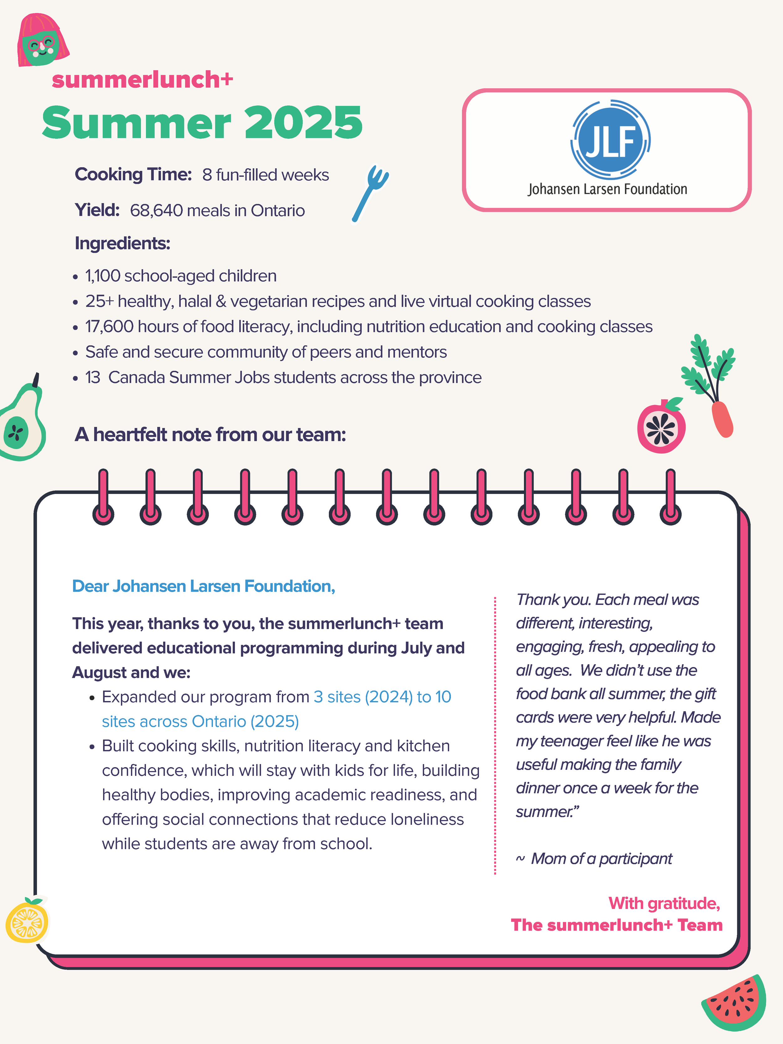 "The generous support from the Johansen Larsen Foundation enabled us to sustain and enhance our program for marginalized young women in Scarborough. This financial support was key to adapting our program activities to better meet participants’ needs and foster their growth and empowerment.