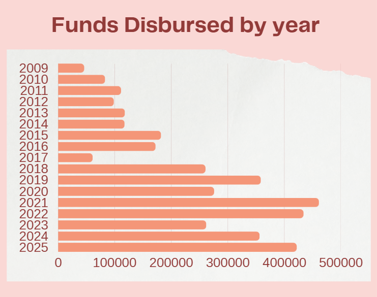 Disbursed in total. Single Year Grants = $10,000; Multi-Year Grants = $7,500/year